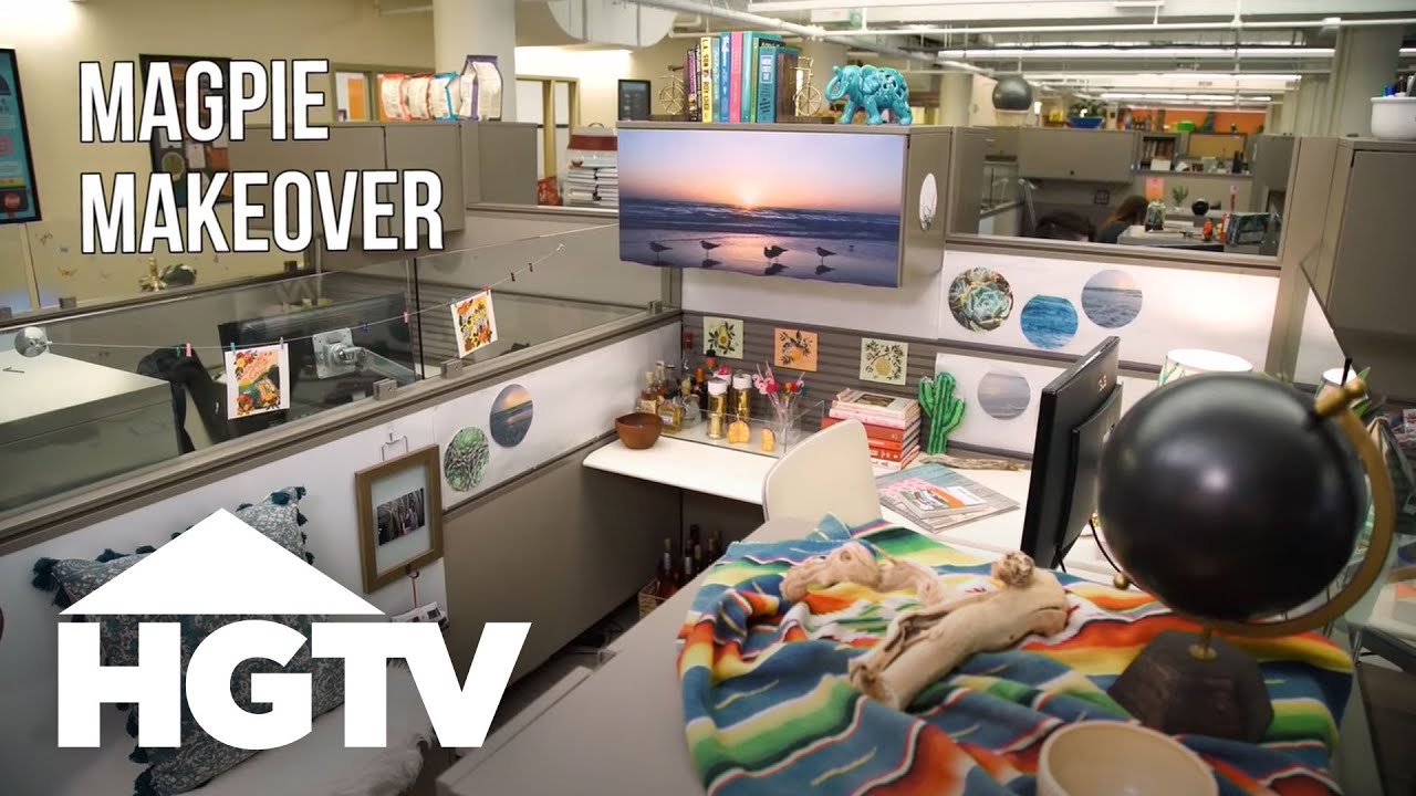 Designer Meg Allan Cole takes this cluttered cubicle and gives it a retro beach house-inspired makeover. By incorporating glass accents, rustic wood, worldly patterns and greenery into your office, you can create a zen space that transports you while you work.