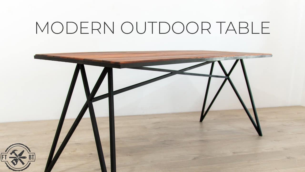 How to make a Modern Outdoor Table from metal and wood. I went out to the Maker Ranch to hang out with Ben Uyeda, Mike Montgomery from Modern Builds, and John Malecki and with their help I built this sleek modern outdoor dining table from ¾” solid bar stock, a little angle iron, and some tropical hardwood deck boards. I’m a beginner welder and I was able to make this steel table base with an entry level welder, grinder and cutoff saw. Check Mike and John’s videos below!