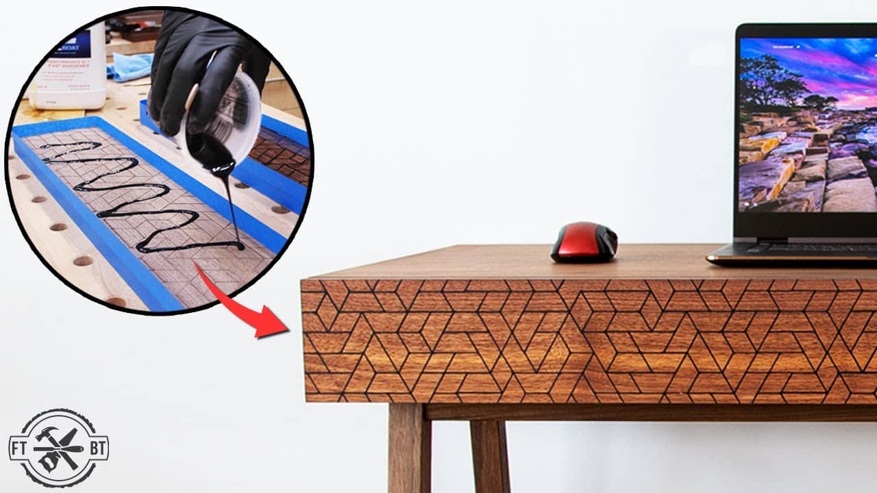 Build a Modern DIY Desk with a killer epoxy inlay drawer design and hidden wire management. Hide all those unsightly wires while you stay at home and work from home. You can make a modern computer desk and keep a wireless keyboard, mouse, and charging station on top for a super clean look.